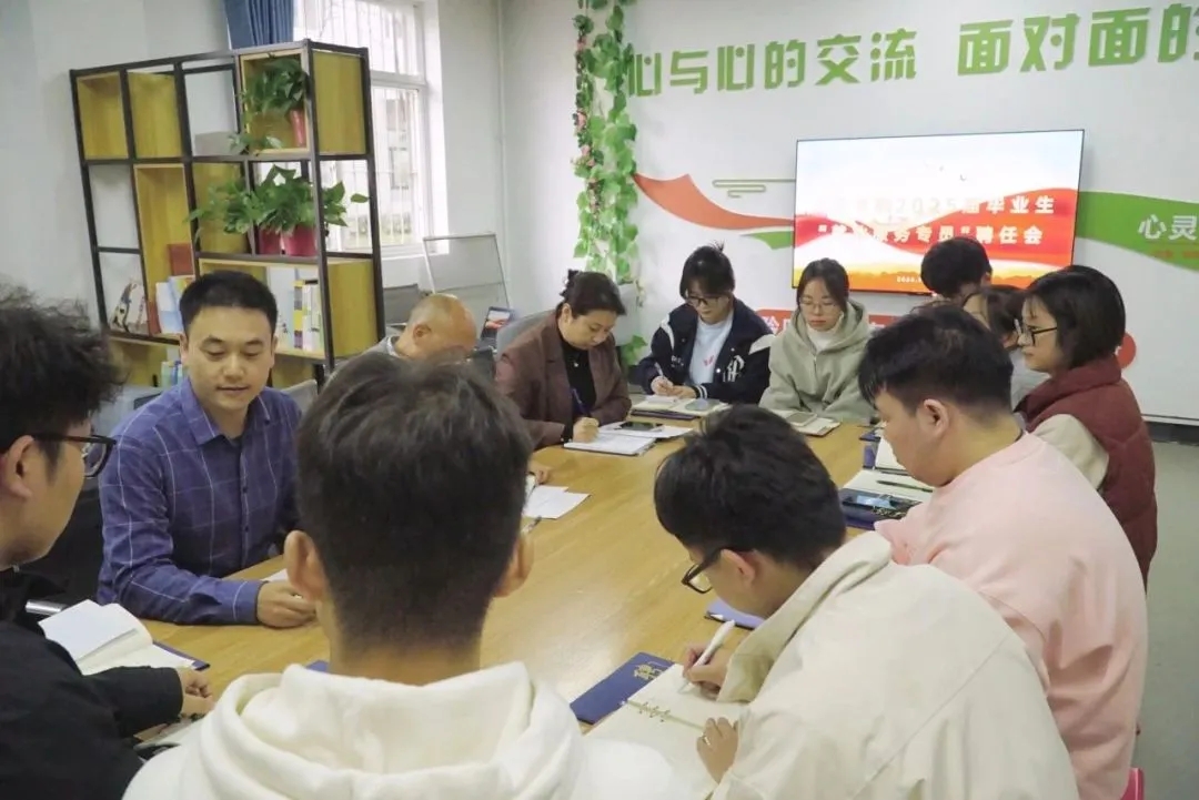 会议伊始,郝卿宣读了“关于聘任姬翔天等10名员工担任365英国在线体育2025届毕业生就业服务专员的通知”,并为各班就业服务专员颁发聘书。随后,各班就业服务专员依次汇报了考研报考情况及就业现状,提出了各班级员工在考研备考及就业过程中遇到的具体困难,并探讨了一系列解决方案,为员工的长远发展与未来规划铺设了坚实的道路,为后续提供更加精准、有效的指导与支持奠定了坚实基础。