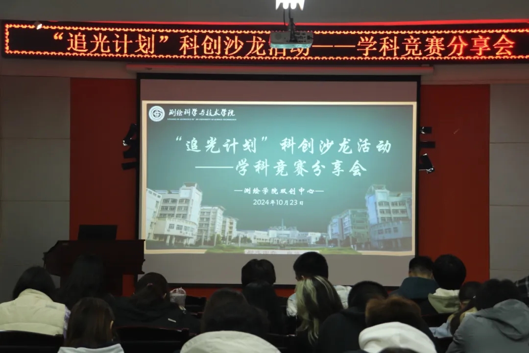 激发学习热情,提升学科素养。王新磊学长从个人实际出发,先向大家讲述了他的竞赛经历,让同学们充分感受到了学科竞赛的魅力。接着他主要介绍了测绘学科创新创业智能大赛,从赛事背景、赛道设置、竞赛方式等方面对该比赛进行了细致讲解,并建议同学们要加强技能提升,动员同学们积极参与学科竞赛,鼓励在实践中提升专业素养。