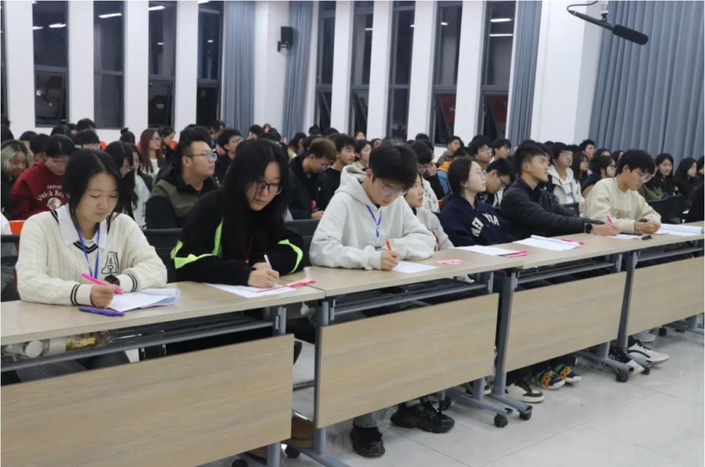 11月6日,开展了四六级提分技巧讲座活动。本次讲座活动联合圆梦考研机构特邀请知名英语教师陈莉为同学们带来了一堂幽默生动的公开课。陈莉用大学四个年级英文单词的有趣记忆引入到四六级的考试流程介绍中,并利用考题详细分析了各题型的做题思路和技巧。活动过程中同学们积极发言,在轻松愉悦的氛围下学习到了丰富的知识要点。