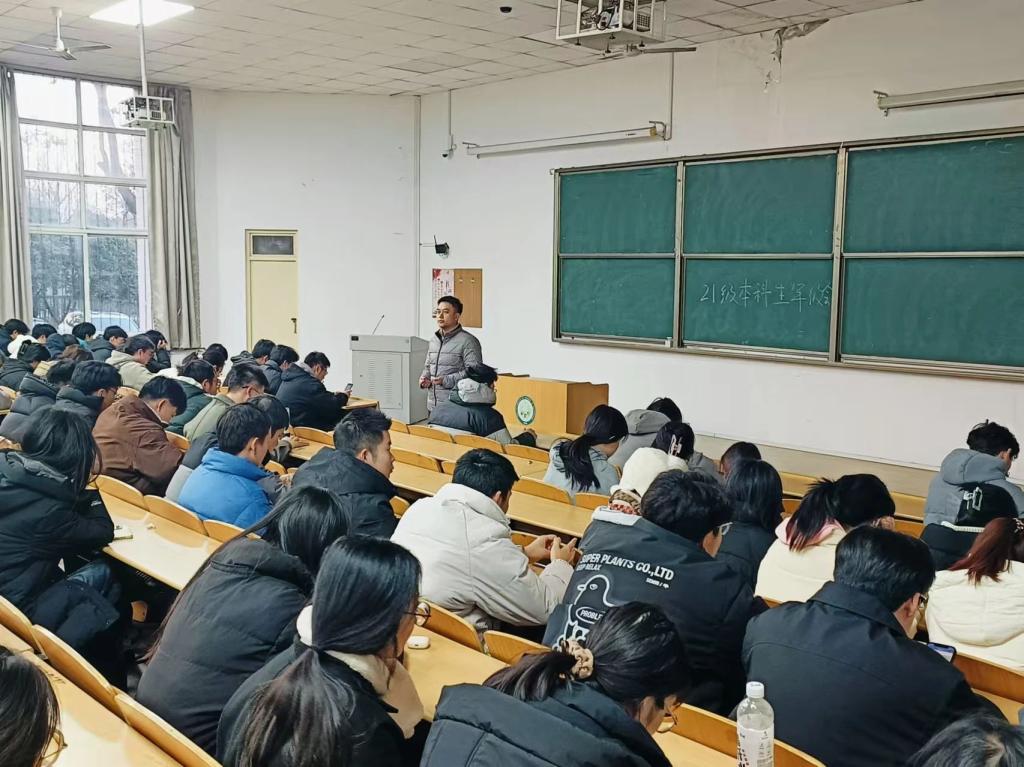 2025年1月9日,365英国在线体育2021级本科生年级会在骊山校园9-105教室举行。辅导员郭江波及全体21级本科生参加本次会议,会议聚焦员工成长发展的多个关键要点,为同学们的假期生活及未来规划指明方向。