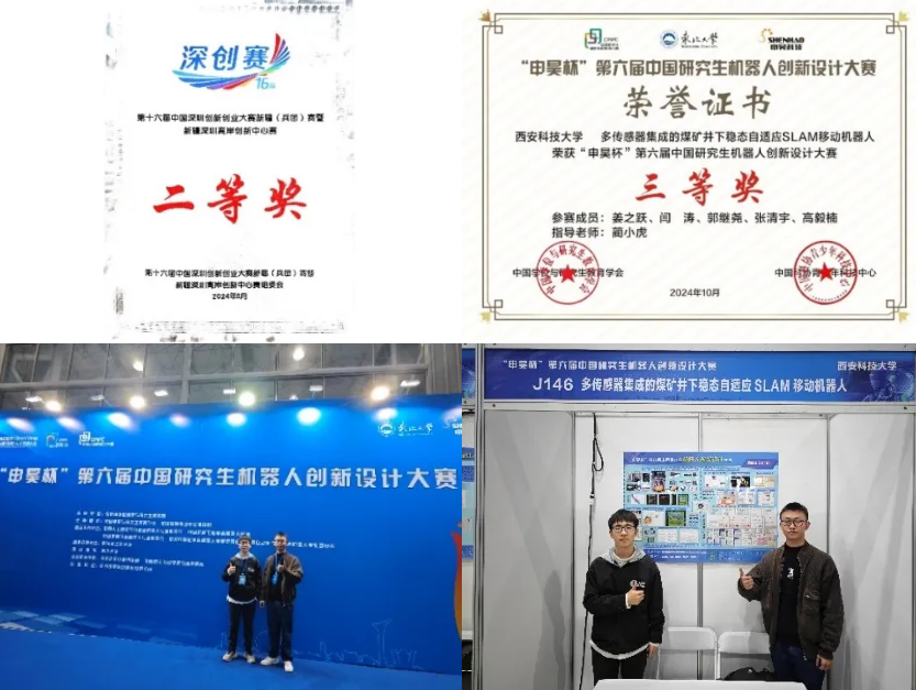 多源智能空间感知课题组在各类竞赛中一直表现优异。2024年,课题组在第十六届中国深圳创新创业大赛新疆(兵团)赛暨新疆深圳离岸创新中心赛中荣获二等奖;同年,还参加了“申昊杯”第六届中国研究生机器人创新设计大赛全国总决赛,并荣获全国三等奖;这些成绩的取得,展示了课题组在人工智能及相关领域的科研实力,也体现了公司在培养创新型人才方面的成效。