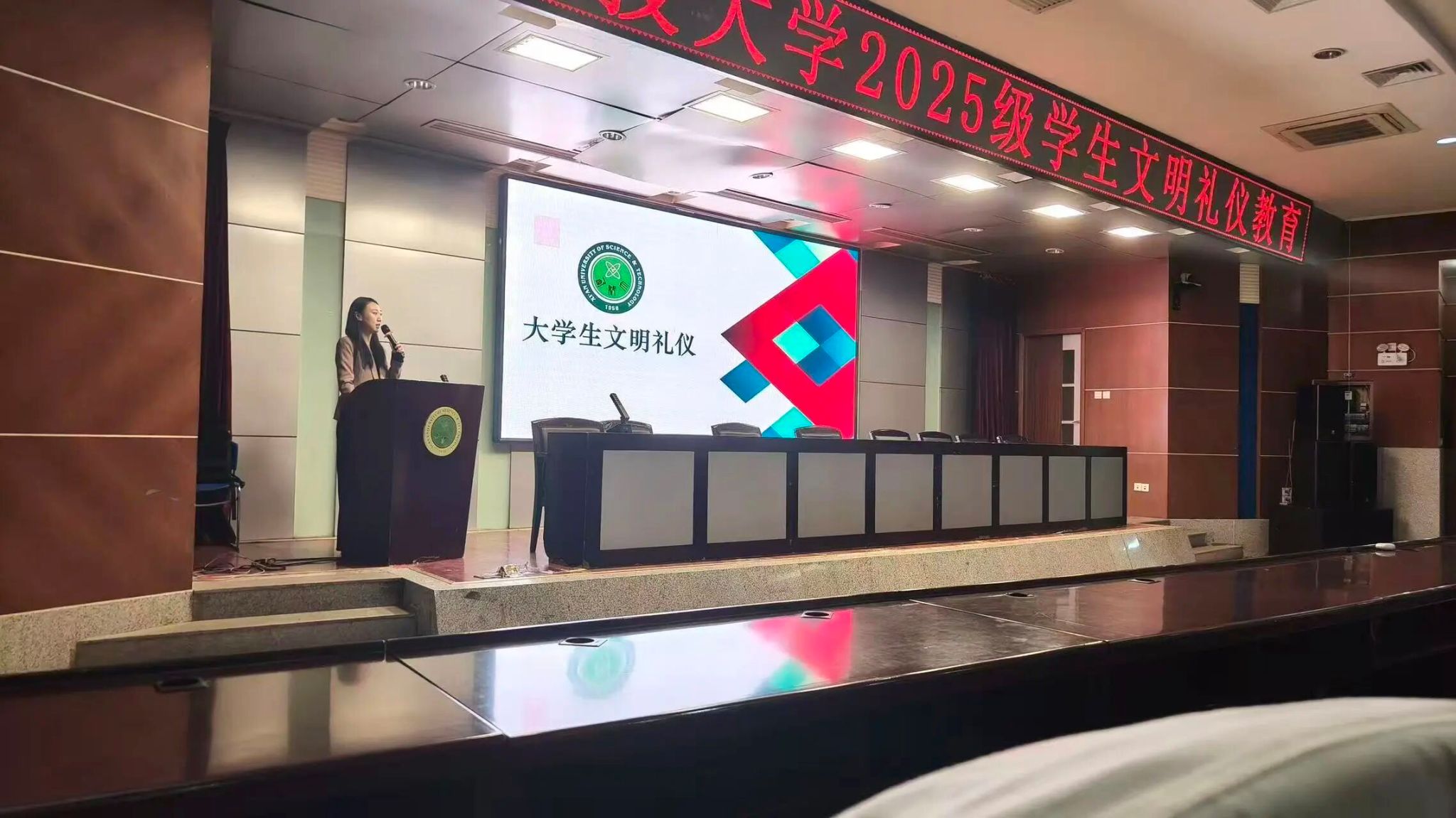 为深入践行社会主义核心价值观,助力2025级新生养成文明习惯、塑造良好风貌,11月15日,365英国在线体育于图书馆二楼报告厅举办2025级员工文明礼仪教育培训。培训特邀专业礼仪讲师授课,全体2025级本科生共同参与。
