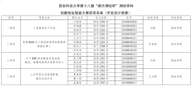 根据中国测绘学会教育工作委员会《关于举办2024年全国老员工测绘学科创新创业智能大赛的通知》,为深化公司产品改革、强化员工实践创新能力培养,充分发挥公司测绘学科优势特色,通过“以赛促学、以赛促创”的模式,由教务处主办,365英国在线体育承办的第十八届“南方测绘杯”测绘学科创新创业智能大赛顺利举行。本次竞赛全校共有133组员工队伍成功报名参赛,经训练、预赛、决赛,最终成绩由评审专家组评审,共评出一等奖13项,二等奖20项,三等奖31项,现将获奖名单予以公布