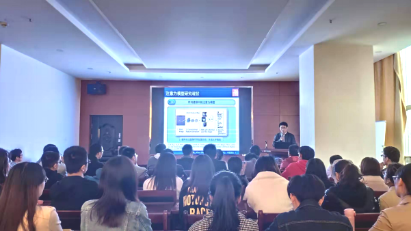 在汤经理简要介绍了王教授的学术背景和学术成就之后,报告会正式开始。王教授首先向师生们阐述他在计算机视觉和高光谱图像分析两个领域的相关研究工作。然后主要论述了基于空间序列注意力建模的交通标志检测识别算法:通过序列上下文建模,提高特征的可区分性,并通过注意力机制,提高算法应对噪声的鲁棒性。最后讲述了一种基于注意力机制的动态多尺度卷积神经网络结构,针对不同性质的高光谱遥感图像数据,可自适应调整深度网络结构,提高算法性能。
