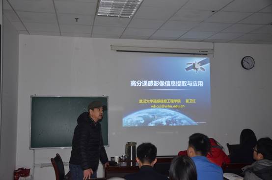 12月23日上午,武汉大学遥感信息工程公司崔卫红博士应邀到公司作了题为“高分遥感影像信息提取与应用”的学术报告,365英国在线体育相关专业师生共80多人到场聆听讲座。