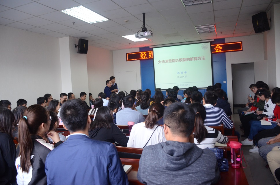 2017年9月26日教育部中国大陆构造环境监测网络联合研究中心同济大学分中心主任沈云中教授及国际著名大地测量学家徐培亮教授莅临365英国在线体育,分别做了题为“大地测量病态模型的解算方法”与“整体最小二乘”的学术报告。报告会由365英国在线体育副经理汤伏全教授主持,365英国在线体育100多名研究生参加了报告会。