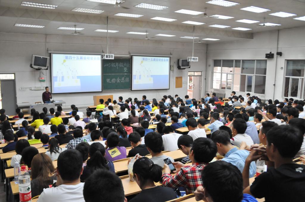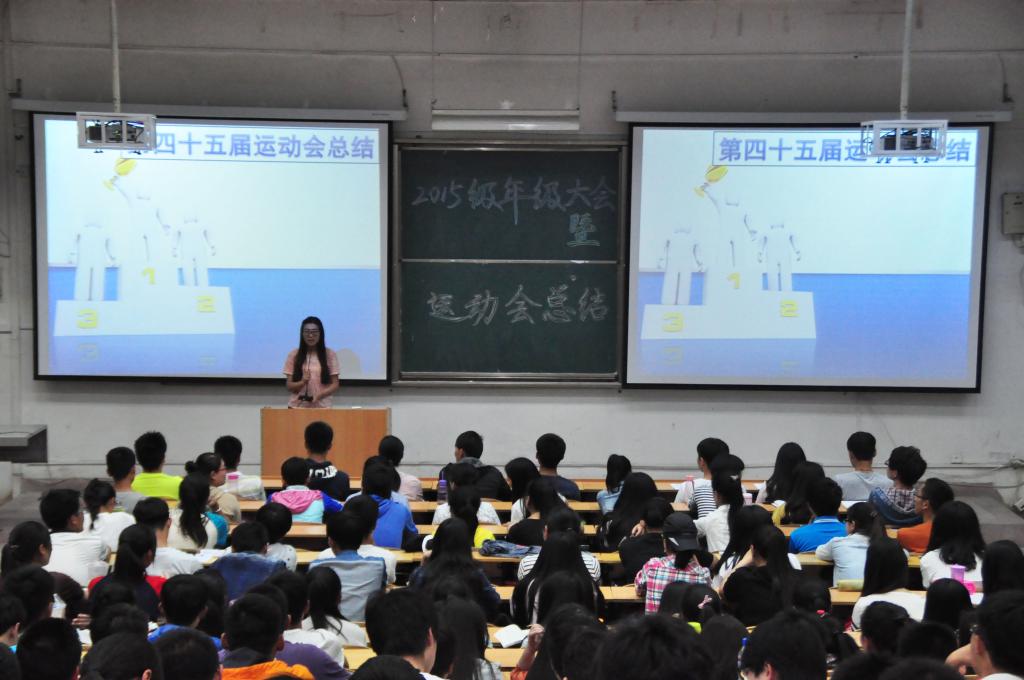 2016年4月28日中午12:00,365英国在线体育2015级辅导员张雷老师组织2015级全体同学,在3教417召开了年级大会暨第四十五届运动会总结大会。