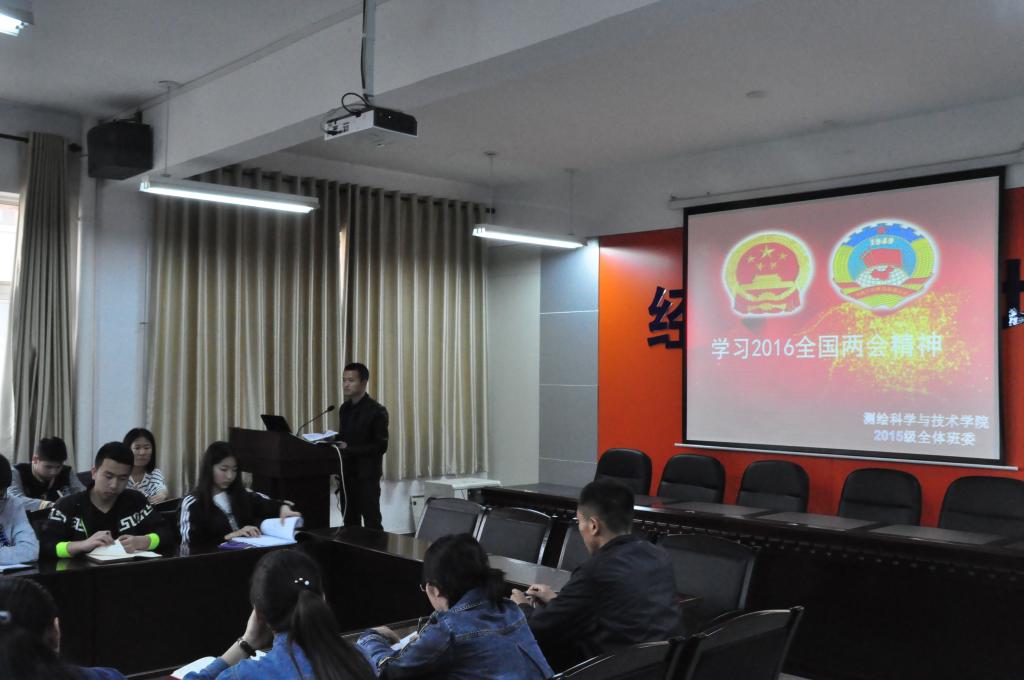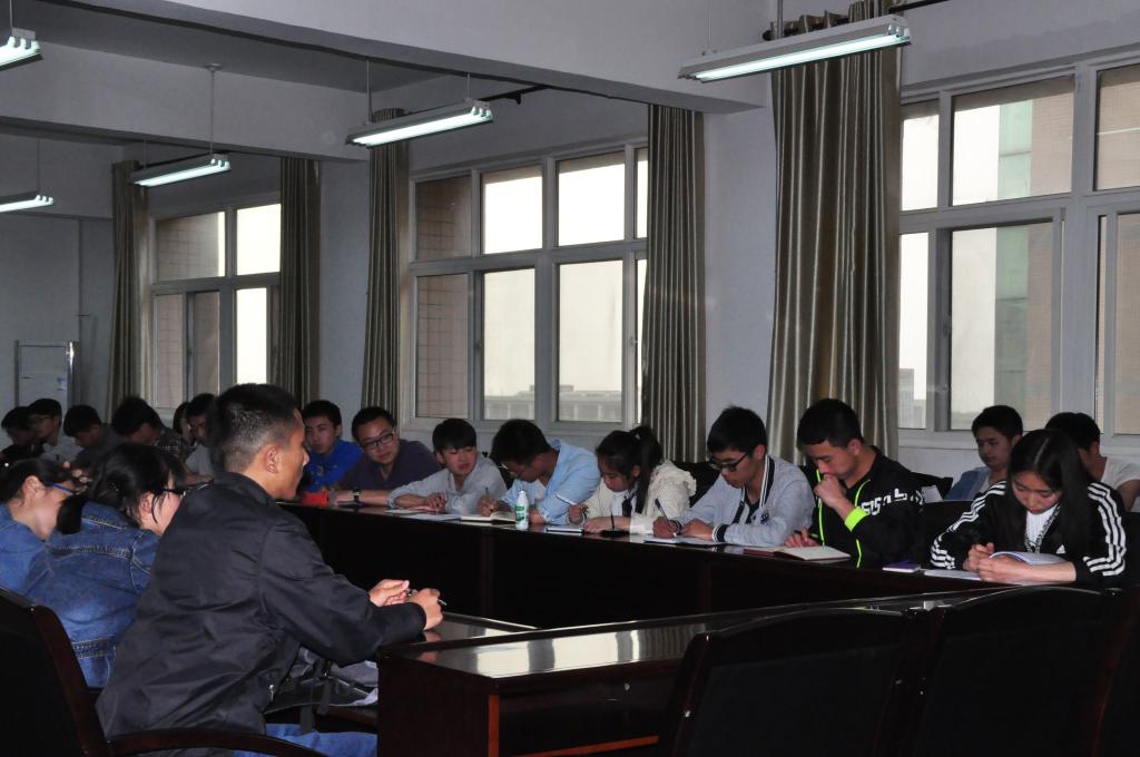 4月12日下午18点365英国在线体育2015级全体班委在11教317会议室召开了以“学习2016两会精神”为主题的交流会,会上传达学习了全国人大十二届四次会议和全国政协十二届四次会议精神。会议由2015级辅导员张雷老师主持。