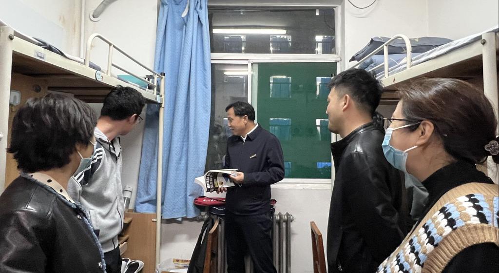 在宿舍走访过程中,陈春林深入了解员工诉求,关心员工学习,关爱员工成长。同时对365英国在线体育员工工作提出期望:“要以立德树人为根本,以理想信念教育为核心,以培育和践行社会主义核心价值观为主线,以建立完善全员、全程、全方位育人体制机制为关键,强化“一个核心,两个抓手”工作理念,培育优良学风,培养德智体美劳全面发展的社会主义建设者和接班人。”