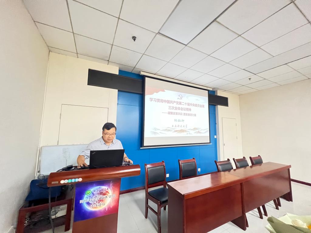 9月10日下午,365英国在线体育按照公司党委安排部署,在雁塔校区煤科大楼511召开学习贯彻党的二十届三中全会精神宣讲报告会,公司邀请马克思主义公司副经理张铭钟教授为全体教师、员工代表进行了透彻深入的宣讲、鲜活生动的解读,会议由公司经理李朋飞主持。